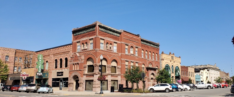 We spent an hour or so walking the historic district of Yankton, hometown to Tom Brokaw, and walked halfway back across the Missouri R. On the footbridge. I was also interested in finding the quilt blocks on the buildings once used for a tour map of the town.