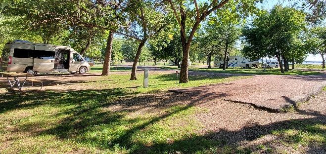 The morning view of the river from the back of our camper welcomed us to a beautiful morning. We enjoyed our morning coffee sitting down by the river followed by a walk. Thus area is noted for bald eagles and we saw several in the distance over the water. Gavin’s Point Dam creates the beautiful water recreation areas and parkland where we camped last night.