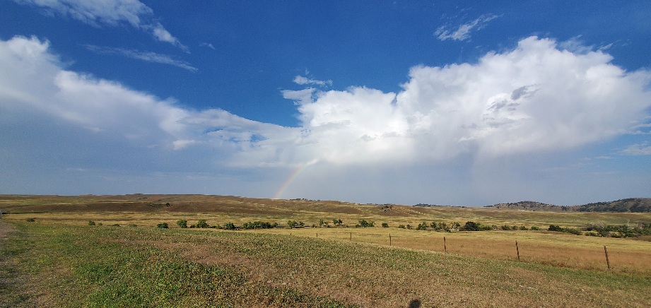 The mornings are cool and luxurious but by 11 am the sun is at full blast. It is supposed to be a little cooler today only going into the high 80s as opposed to the high 90s so maybe we can do a little more walking. The haze on the Black Hills is less than it was yesterday so photography might be good. One of my SLRs has a sensor problem and will need to be repaired when we get home. Fortunately I have a backup with me.