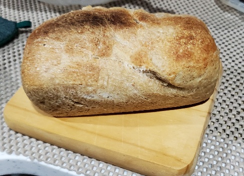 Since the beginning of Covid-19, I have baked all of our bread minus a few specialty items like Naan or bagels. Not wanting to break the baking streak I made 3 kinds of dough and froze them in small loaf sizes: spelt, whole wheat and cheese dough. I take a frozen loaf out in the morning and leave it in the fridge all day, let it rise in the evening and bake it just before bed. This is the second one I’ve baked on this trip.