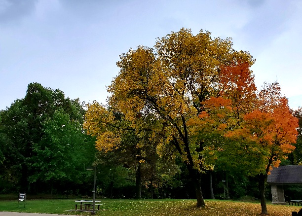 The fall foliage is taking on more of the colors we are used to in the east as we add maples and sumac to the tree list. A storm was brewing to the northeast when we stopped for lunch in a very pretty MN rest area.