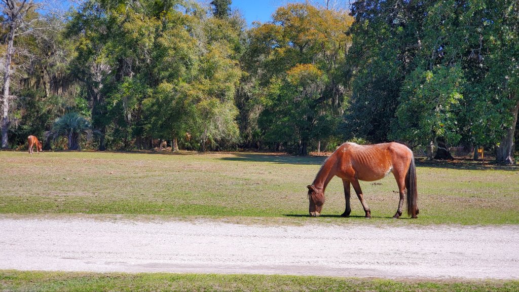 The horses which roam freely on Cumberland are feral, meaning that their ancestors were once domesticated. Legend has it that they were originally brought to the Island by the Spanish