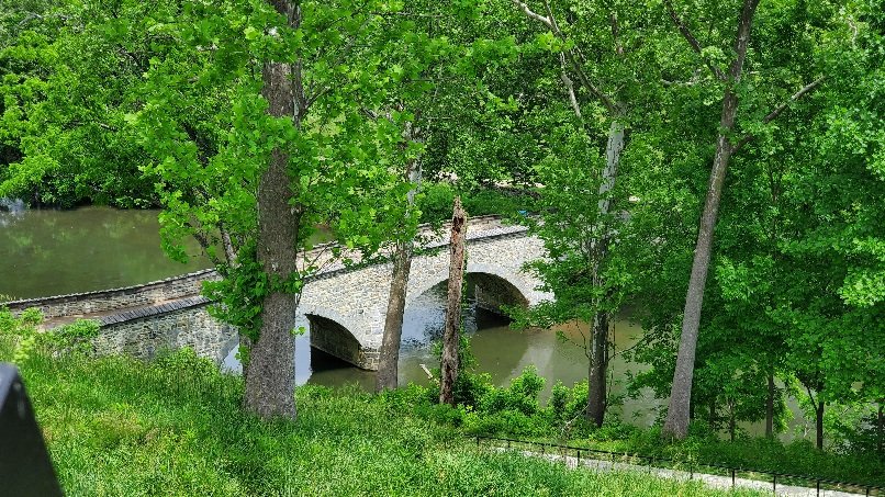 Hagerstown/Antietam KOA, Williamsport. MD is home for tonight. We have a nice campsite on a rather wide creek. The weather today was hot but not like yesterday. A bit of rain this afternoon made things pleasant. It waited until we had finished lunch. Nice relaxing afternoon with a ‘beach reading’ book on my kindle. Dinner is pasta and salad. It promises to be a lovely evening after the rain. There are kids and dad ‘fishing’ in the creek near us. Fun to listen to them.