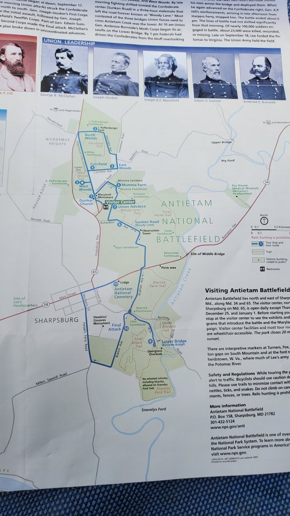 We had a different start to the day. Both of us had zoom meetings. My husband’s was at 8 am and mine at 11 am. Once Brian’s meeting was finished we packed up and drove to today’s sightseeing location before my meeting at 11 am. I managed to participate in a 2 1/2 board meeting and do the guided auto tour of the Battlefield. The wonders of modern technology.