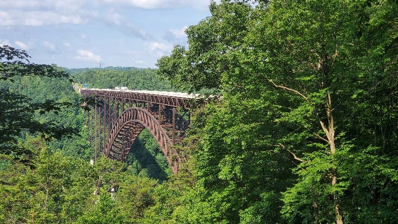 Fallout 76: this bridge is a landmark location. At one point I had a C.A.M.P directly underneath it. In the game it is not complete.