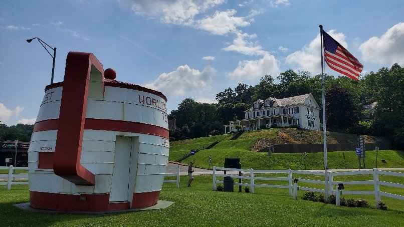 Today we start the trek home via ‘the stick’, the northern panhandle of West Virginia. We still have one more Fallout 76 location to visit, the Giant Teapot. We decided to take Hwy 7 north through the Upper Ohio Valley along the Ohio River in Ohio thinking it would be more scenic than the West Virginia route. Well it was a route along the river but the scenery was not exactly pastoral.