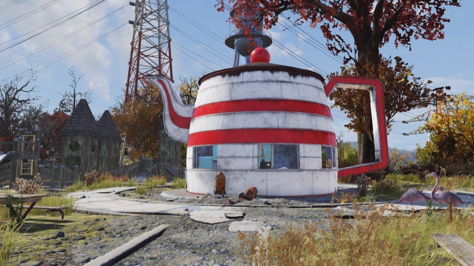 It is one of the Locations found in The Forest of Appalachia, and is the site of the Daily Quest Strange Brew and the Event Quest Tea Time. I spend a lot of time here in the game. It is one of my favorite daily quests. It’s curator is Sweetwater, a delightful robot with a British accent who exchanges honey for Sweetwater tea (ans caps).