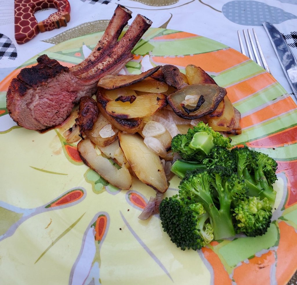 We are hoping to cook and eat our Thanksgiving dinner outside if we do it early enough. That’s the plan anyway… rack of lamb we brought with us, potatoes and onions in foil, steamed broccoli. I’ll make some lemon microwave cakes (well what else could I do?) With icecream for a late dessert.