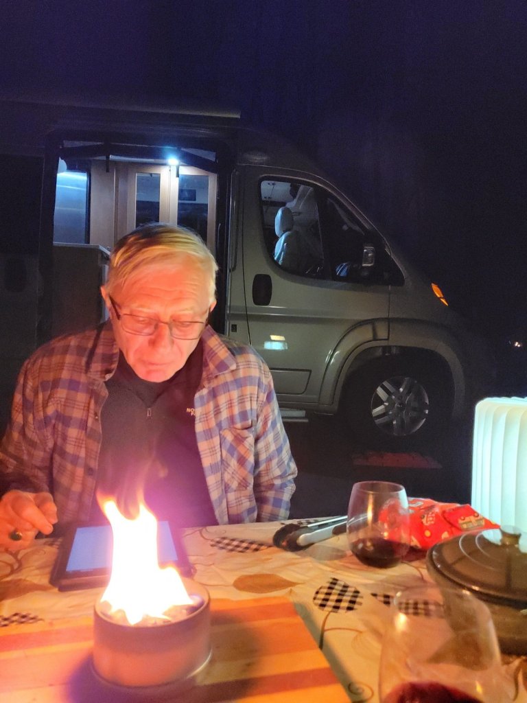 Last night was a beautiful evening. We sat outside until it was almost dark, had showers followed by a light supper of soup, cheese and crackers and a walk after dinner for the first time on this trip.