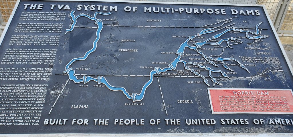 Our campsite tonight is at Norris Dam State Park. The dam itself is part of the TVA network of dams. We have been crisscrossing this network on the trip having first come across it near Paducah, KY several years ago on a previous trip in a previous Roadtrek.