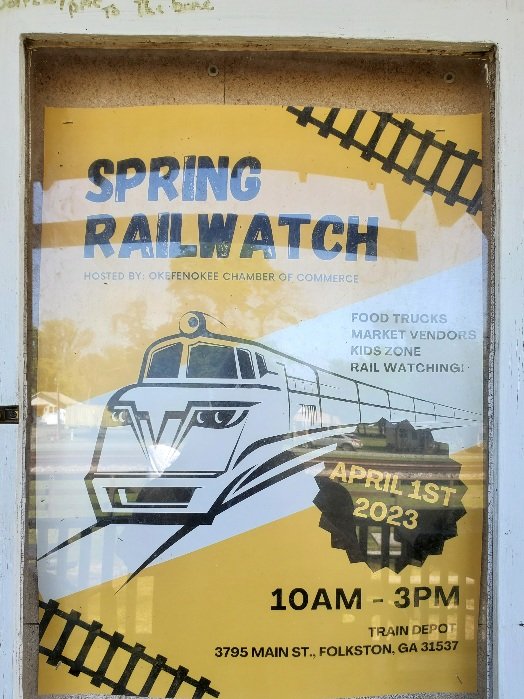 Watching trains is a thing! From the viewing platform in Folkston, visitors can see trains passing on their way to and from Jacksonville, Florida, in the south, and a split north of town where trains go west to Waycross, Georgia, and north to Savannah.