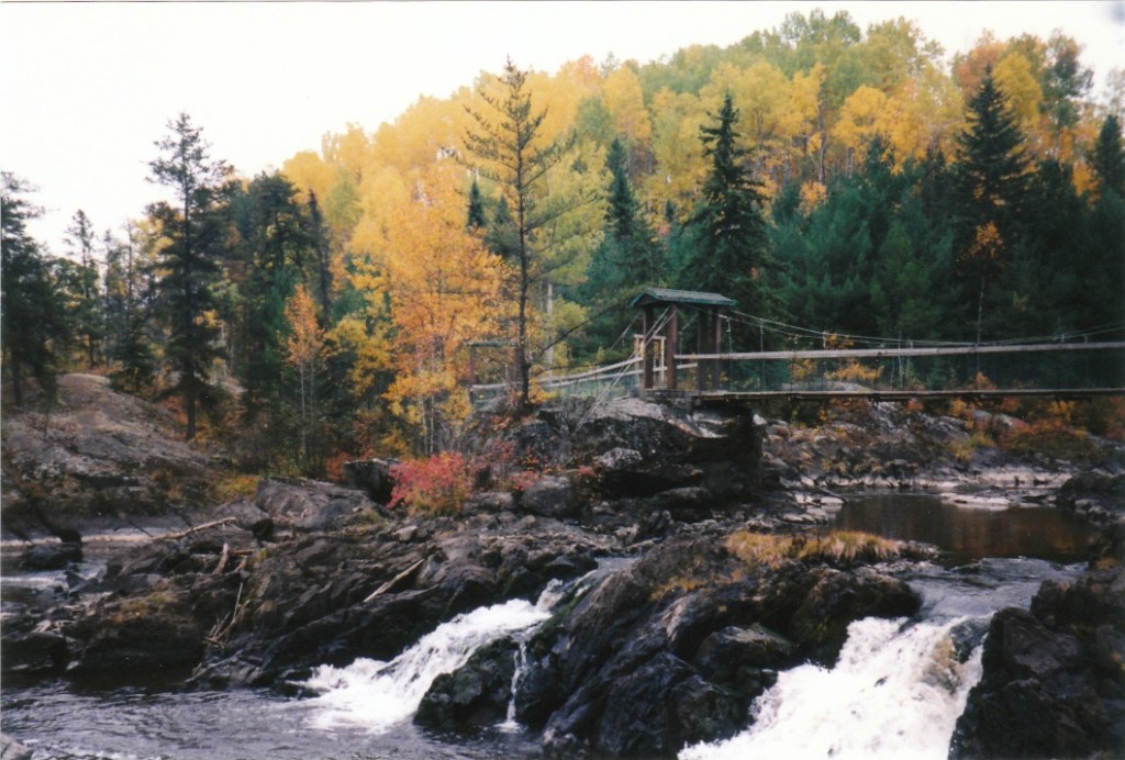 There is a small provincial park near Englehart that has a beautiful water falls. It’s not open for the season yet and it’s quite a hike to the falls from the road so we didn’t quite make it this time. The last time we were here was in 1997 (in the fall for those of you who pay attention to foliage) and I was able to download a photo from my cloud storage. I also have one of me taken here with our eldest daughter as a baby on my back!