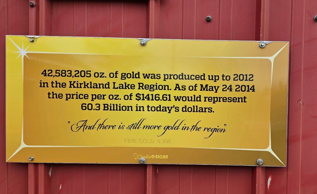 Canada is rich in mining resources and northern Ontario is no exception. From here on in we will be traveling through mining country: copper (Timmins), gold (Kirkland Lake and Virginiatown which at one time was the largest gold producer in the British Empire), nickel (Sudbury), silver, zinc, amethyst. The gold was discovered when they were laying the railway. My room mate in my second year of University came from Virginiatown which is just east of Kirkland Lake towards Quebec.