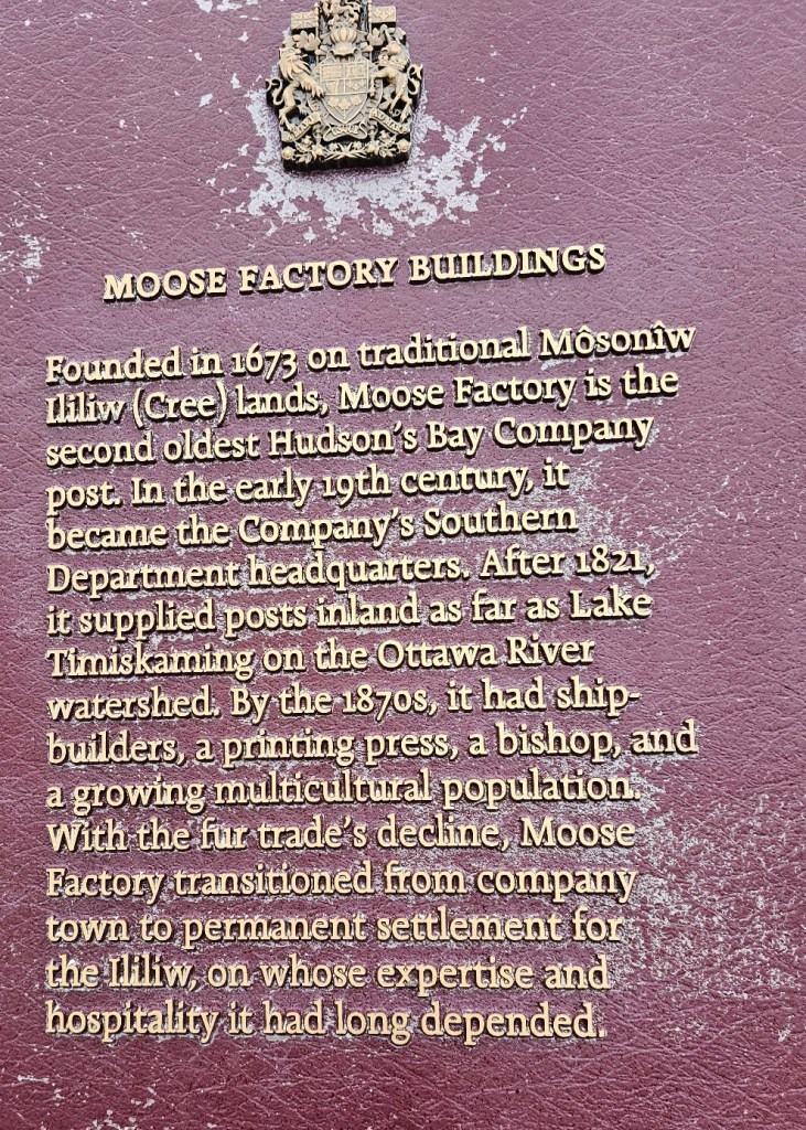 It was the first English-speaking settlement in lands now making up Ontario and the second Hudson’s Bay Company post to be set up in North America after Fort Rupert. On the mainland, across the Moose River, is the nearby community of Moosonee, which is accessible by water taxi in the summer, ice road in the winter, and chartered helicopter in the off-season (break-up or freeze-up).