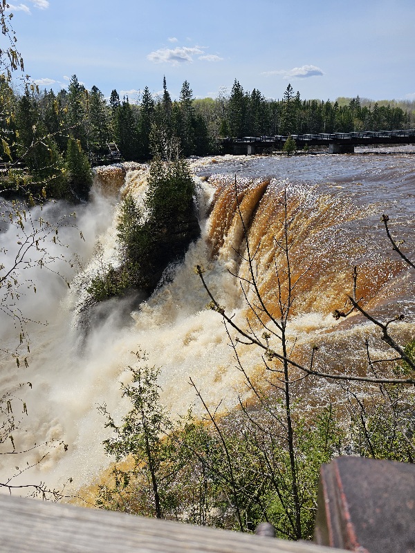 The falls have a drop of 40 m (130 ft), cascading into a gorge carved out of the Precambrian Shield by meltwater following the last glacial maximum. Because of its size and ease of access, it has been consequently nicknamed “the Niagara of the North”.