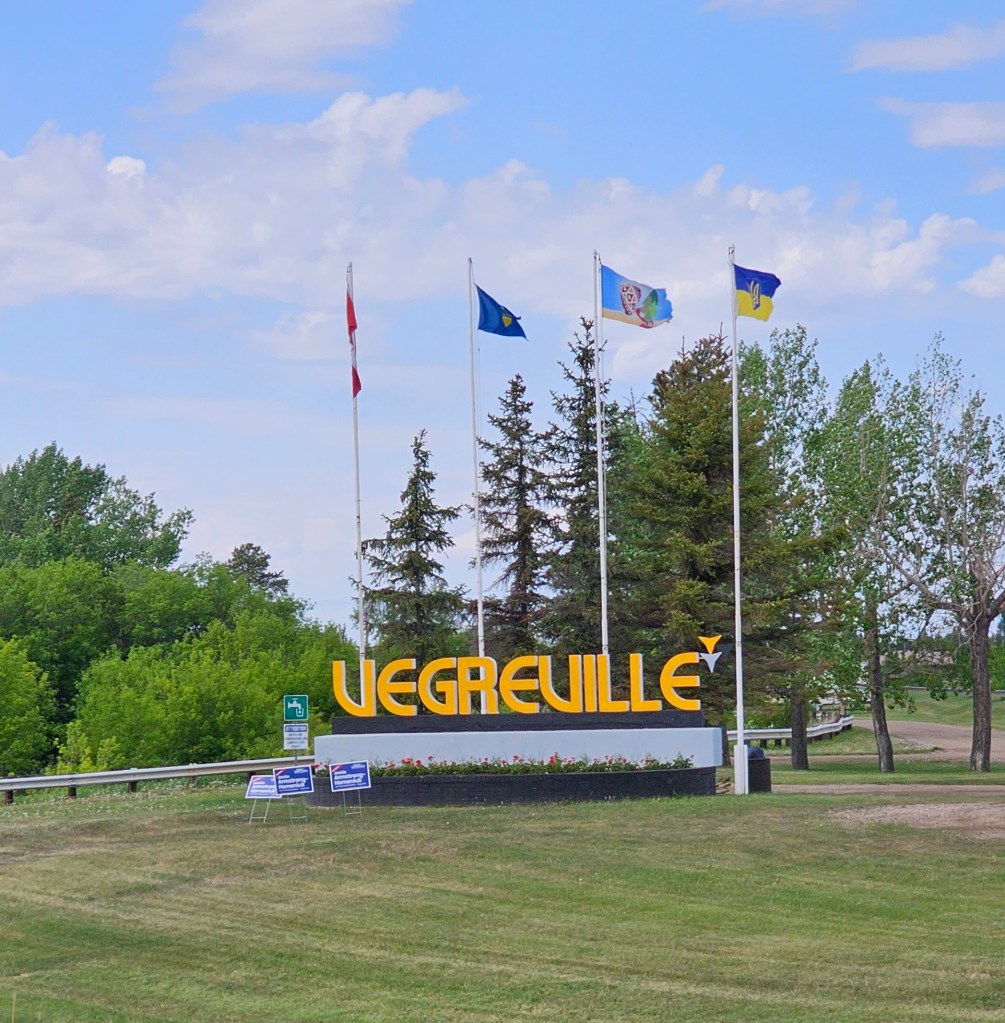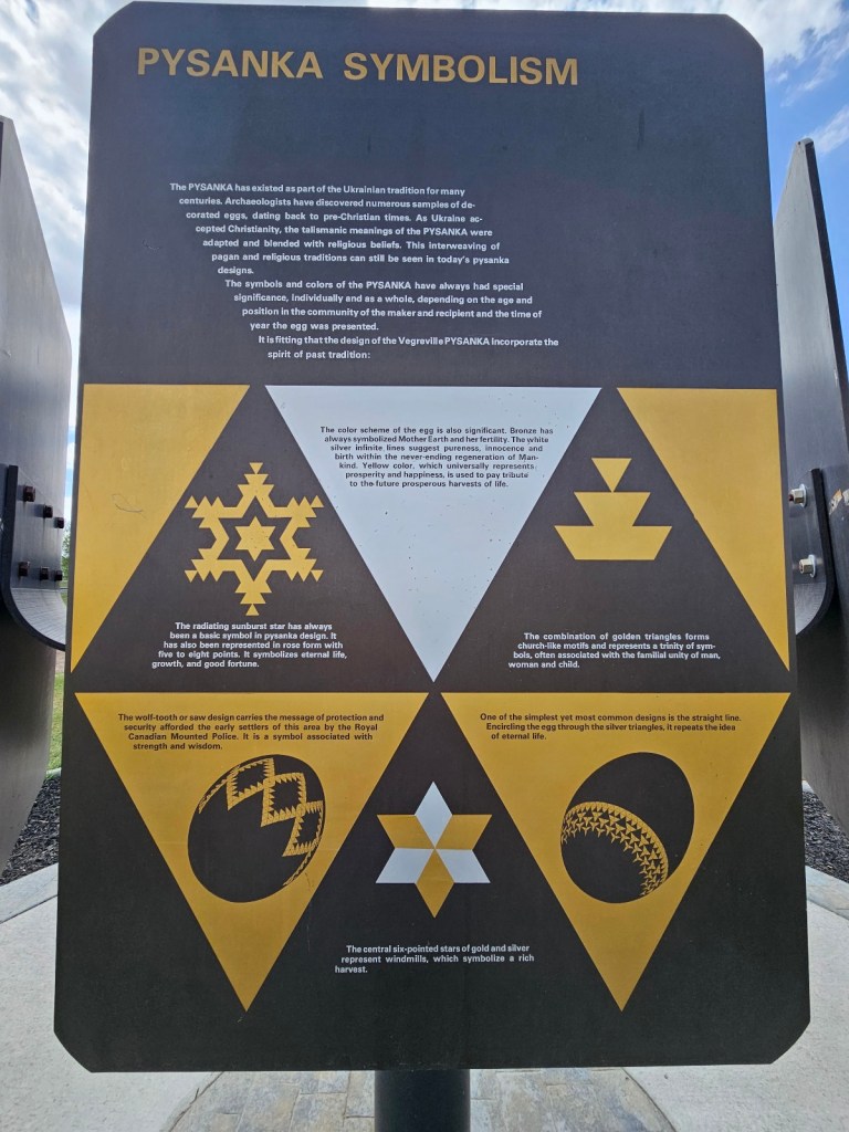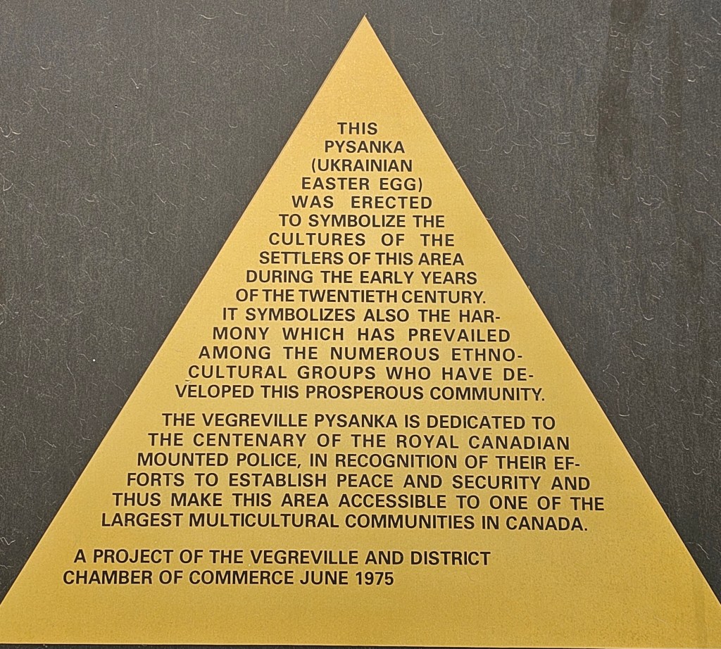 Vegreville is on the TransCanada Hwy about an hour and a half east of Edmonton, AB. A large percentage of Vegreville’s population is of Ukrainian Canadian descent, and it is home to the Vegreville egg, the world’s second largest pysanka (Ukrainian Easter egg).