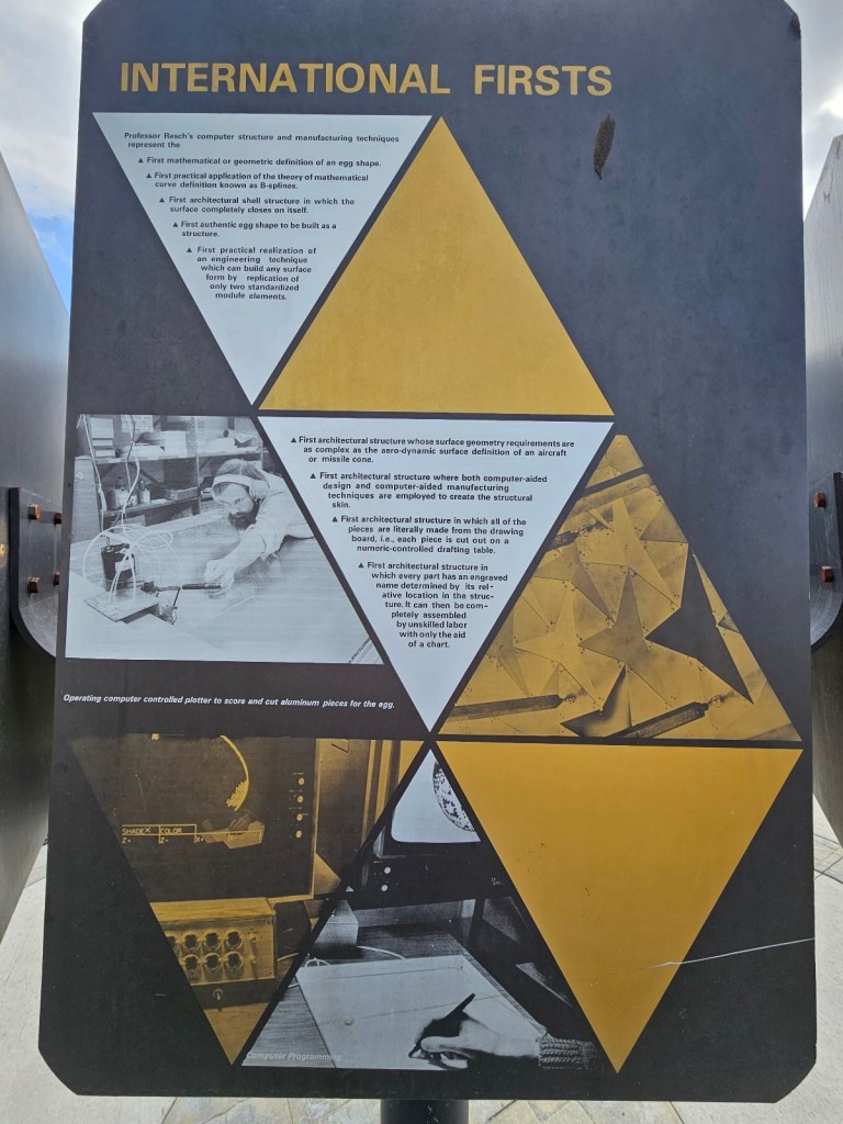 The Vegreville egg is a giant sculpture of a pysanka, a Ukrainian-style Easter egg. The work by Paul Maxym Sembaliuk is built of an intricate set of two-dimensional anodized aluminum tiles in the shape of congruent equilateral triangles and star-shaped hexagons, fashioned over an aluminum framework. The egg is 31 ft (9 m) long and three and a half storeys high, weighing in at 2.5 t (5,512 lb). It is the second largest pysanka in the world (the biggest one was built into part of the Kolomyia Pysanka Museum in Ukraine, in 2000).