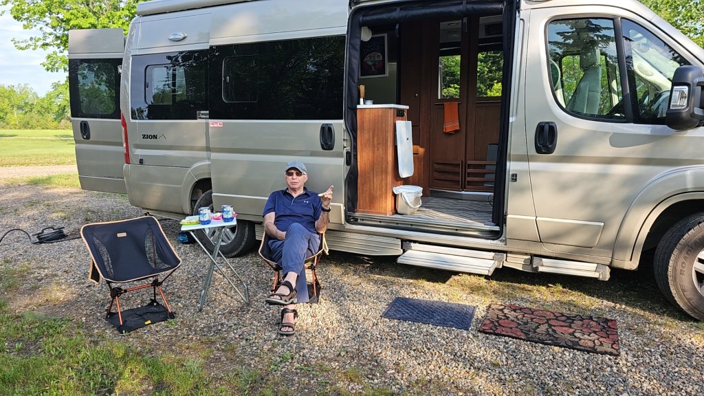 Our campground tonight is at Metis Crossing about an hour and a half east of Edmonton. It is a very new experiential Metis site. Stay tuned until tomorrow as we are still figuring out exactly what’s here. We are basically camping in a farm field with sheep and chickens. We have the entire campsite to ourselves, well, except for the sheep.