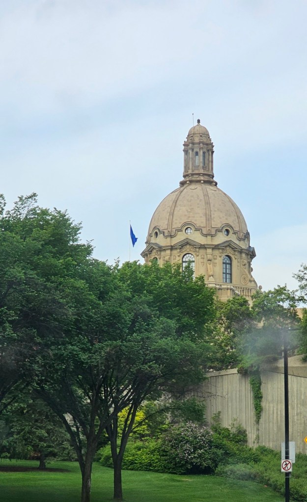 We drove around Edmonton for a bit just to see the Legislative buildings as Edmonton is the capital of Alberta and get a general view of the city. We couldn’t find a good place to park and walk so it was literally a drive through. Edmonton is a pretty city spread out along the North Saskatchewan River, the same river we camped on at Metis Crossing, with an abundance of park land.