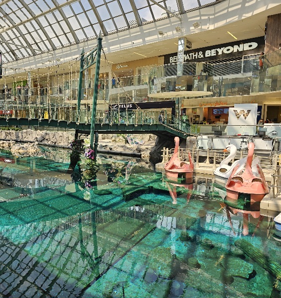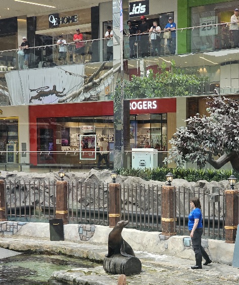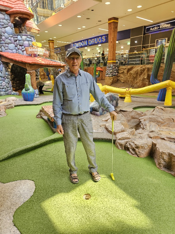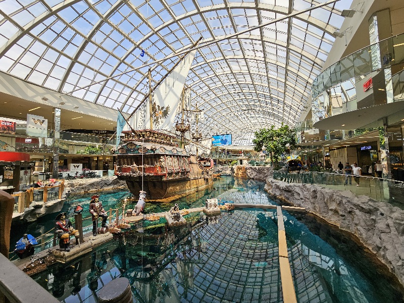 Then we headed for the world famous West Edmonton Mall! In addition to the usual Mall shopping, it has the world’s largest indoor wave pool, a skating rink, a complete amusement park, two mini golf areas, an escape room, a bowling alley, a small aquarium with South African penguins and sea lions, a full sized replica of a Spanish galleon, swan boats, a shooting gallery, indoor electric go carts, two food courts, and Bourbon Street where you can find restaurants of all sorts… a real cross between Disney World, Las Vegas and shopping.