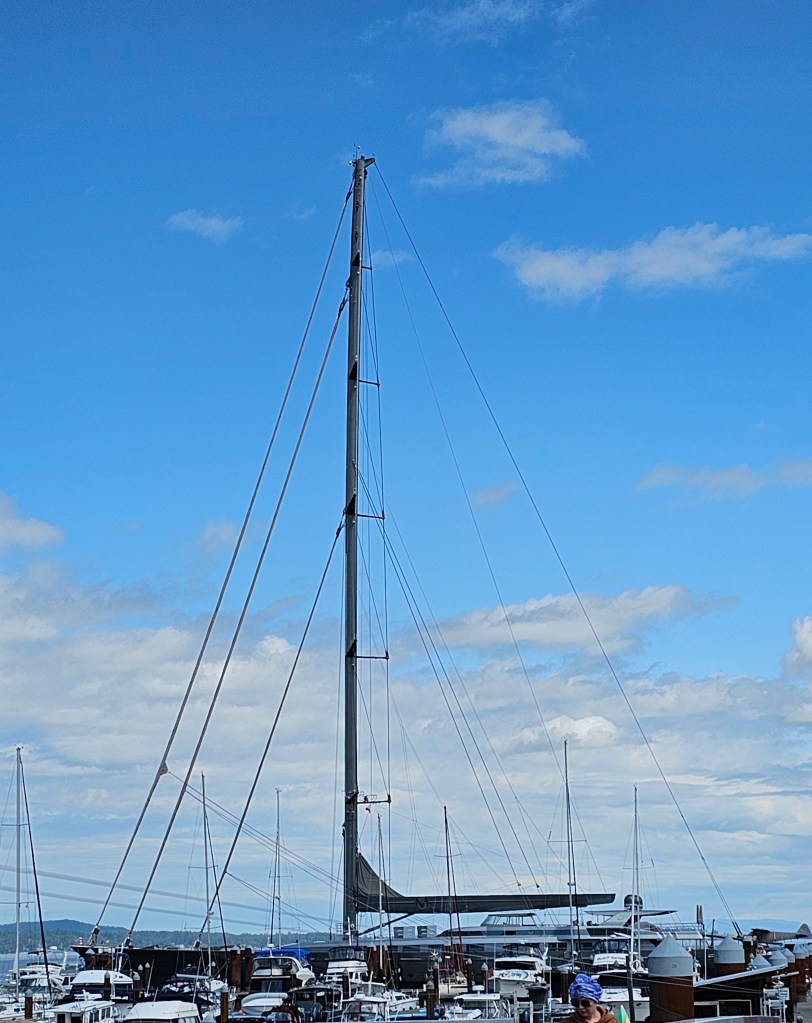 Trying to find something quieter and more scenic, we stopped in Mill Bay that was supposed to have a nice place in the marina to have a cold drink. It was closed of course. However, the item of interest in the marina was this massive single masted yacht which I Googled to find more details and its owner.