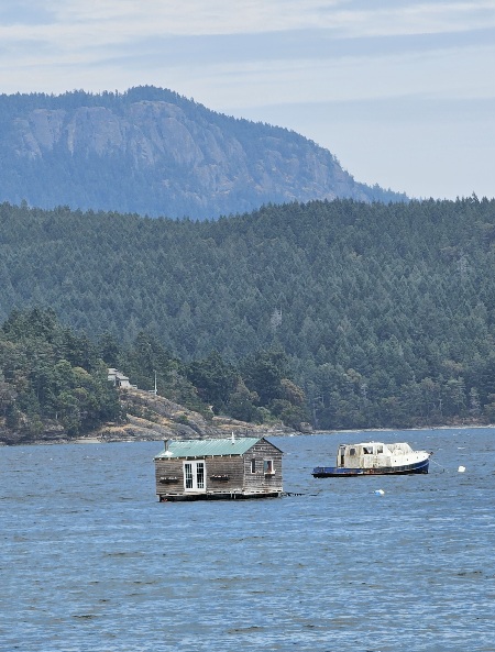 We stopped in Mill Bay again hoping to eat at the local bistro that gets good ratings. We shopped for food and refilled the wine cellar. The bistro however was elusive. Parking was an issue and then they couldn’t seat us (at lunch on a Thursday) for another 45 minutes. We elected to move on to Cowichan Bay which was supposed to be pretty with shopping and restaurants. There must be something about Thursdays. Cowichan Bay markets itself as a sleepy little town that moves at a relaxed pace. It was packed!!! Cars and people everywhere. We ended up picnicking at the boat ramp. Altogether not a bad choice and scenic location.
