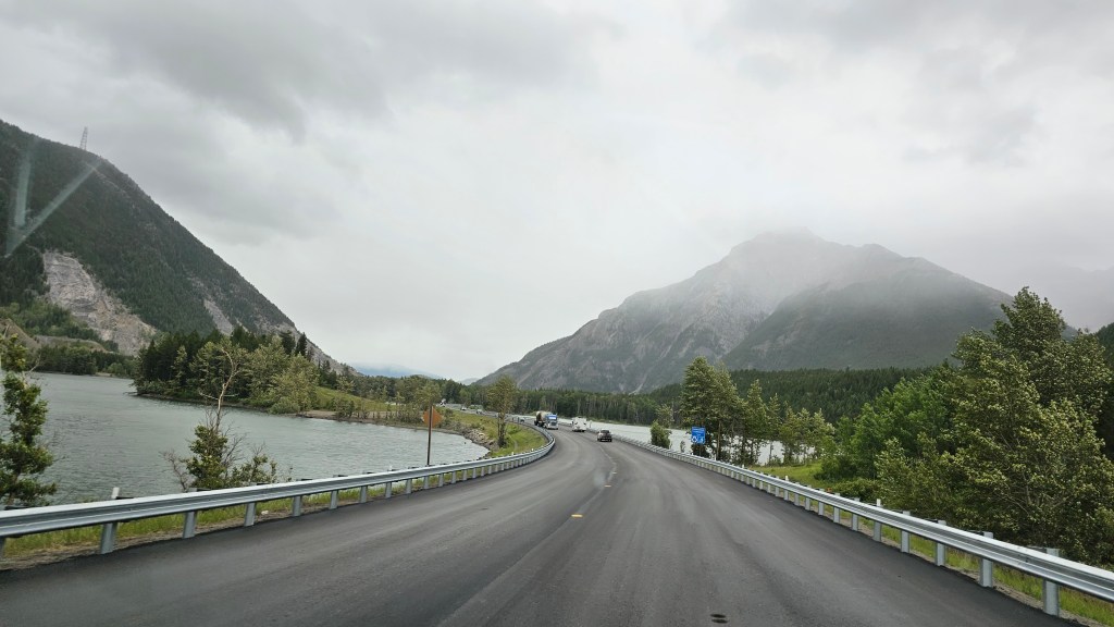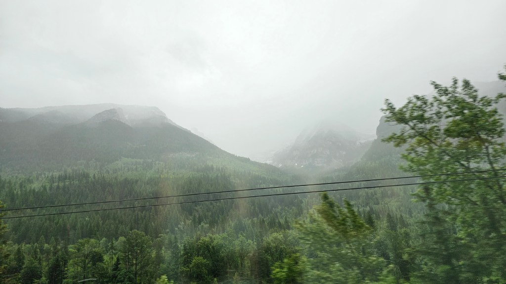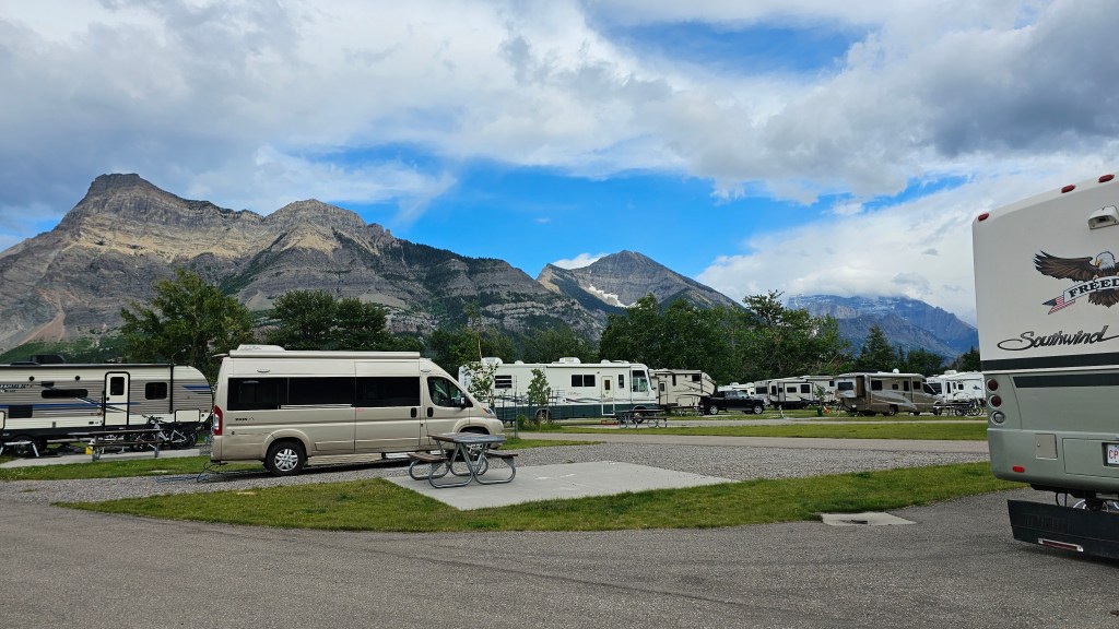 I don’t even know where to start writing up today. It started so innocuous and ended up somewhere we hadn’t entirely planned to be. We got up early and were out of camp before 8 am. It was cold, rainy and foggy. We have about 3 1/2 hours to our final destination of Waterton / Glacier international Peace Park straddling the border between Alberta and Montana. We wanted to arrive early enough to enjoy the only day we had planned for this park.
