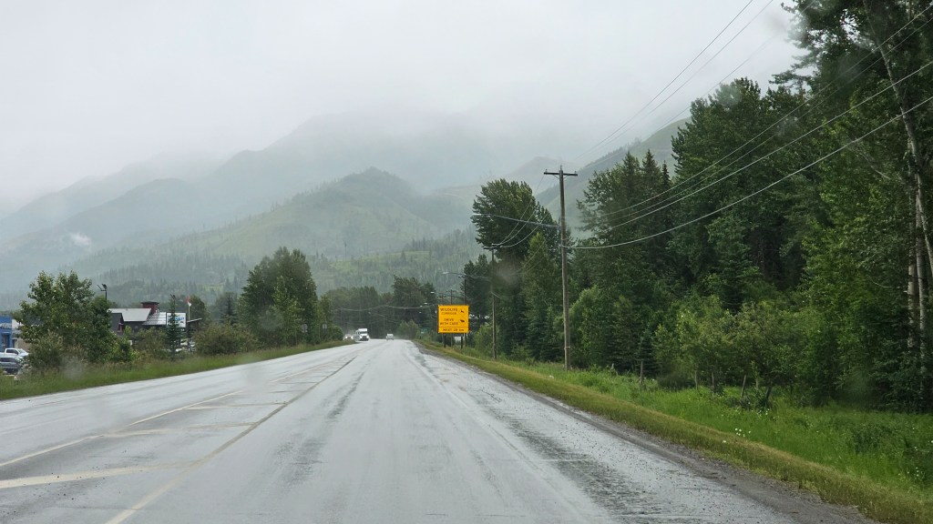 Fernie, BC is a skiing mecca and the only city in BC completely surrounded by the Rockie Mountains. We didn’t have the luxury, given the weather of seeing it without the mist… that’s snow by the way, in the mountains. At this point we have passed from the Selkirk Mountains into the Canadian Rockies again but much further south than Banff / Jasper.