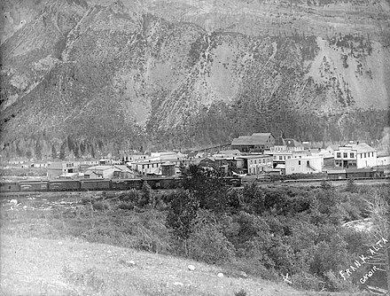 The Frank Slide was a massive rockslide that buried part of the mining town of Frank in the District of Alberta of the North-West Territories, Canada, at 4:10 a.m. on April 29, 1903. Around 44 million cubic metres/110 million tonnes (120 million short tons) of limestone rock slid down Turtle Mountain. Witnesses reported that within 100 seconds the rock reached up the opposing hills, obliterating the eastern edge of Frank, the Canadian Pacific Railway (CPR) line and the coal mine. It was one of the largest landslides in Canadian history and remains the deadliest, as between 70 and 90 of the town’s residents died, most of whom remain buried in the rubble. Multiple factors led to the slide: Turtle Mountain’s formation left it in a constant state of instability. Coal mining operations may have weakened the mountain’s internal structure, as did a wet winter and cold snap on the night of the disaster.