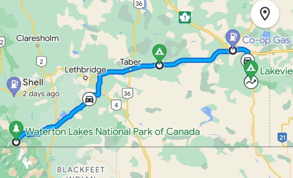 It’s my turn to drive. Heading east we have the mountains at our backs. Our forward view is the vast rolling southern Alberta prairies. Crops, particularly around Taber are potatoes, canola and other grains.