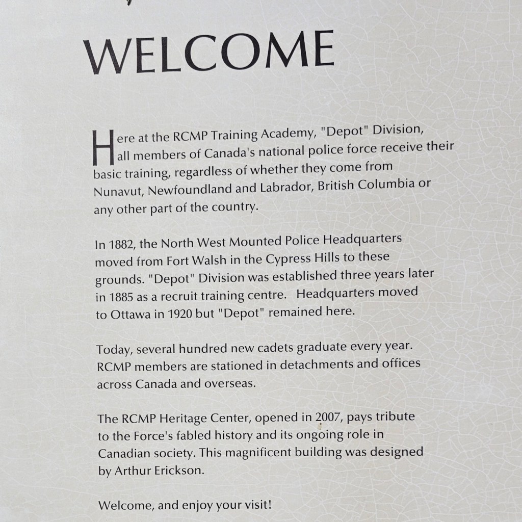 I was so busy reading everything that l didn’t take any other photos! There was also a movie about the RCMP training center, The Depot. All RCMP officers are trained here at the Depot. A new squad arrives every Monday. Rigorous training takes 6 months. Not everybody makes the final cut. About 23% of the students are female.