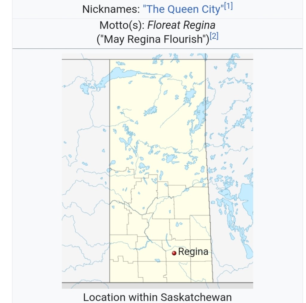 Regina was previously the seat of government of the North-West Territories, of which the current provinces of Saskatchewan and Alberta originally formed part, and of the District of Assiniboia. The site was previously called Wascana (“Buffalo Bones” in Cree), but was renamed to Regina (Latin for “Queen”) in 1882 in honour of Queen Victoria.