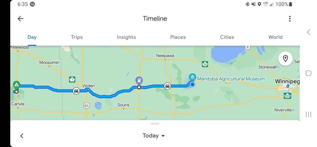 Once we crossed the border into Manitoba, we lost another hour as Manitoba is in the Central Time Zone.