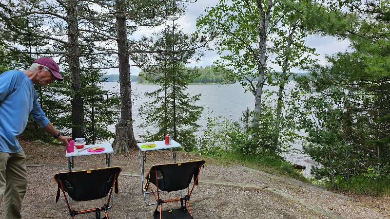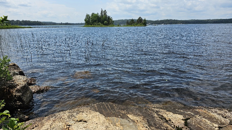 We arrived in Quetico before lunch. The sun had come out and it’s lovely and warm… and buggy! We put the bug tent up and then had to take it down pending a thunderstorm. We went for an hour long walk on the trail along the lake swatting mosquitoes the whole time. Northern Ontario at its best in late June.