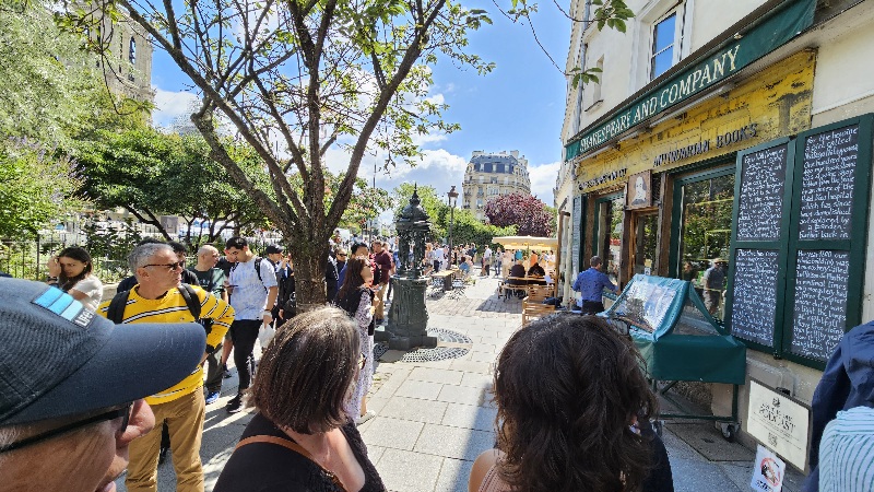 The girls with us want to visit the English bookstore just opposite Notre Dame, Shakespeare and Company. Little did we know it’s the most popular attraction in Paris after the Eiffel Tower and the Louvre. We came over yesterday afternoon late in the afternoon. The lineup to get in was impossible. We decided to get here early today before it opened a. Success but we were here at least 30 minutes early. The store hasn’t opened yet and the end of the line is not visible.