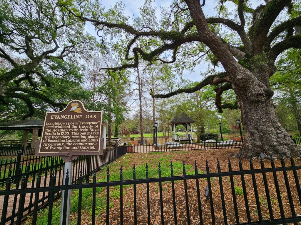 In St. Martinsville we stopped at the Longfellow-Evangeline State Park for a visit to a restored Acadian plantation house and farm and then visited Evangline’s Oak.