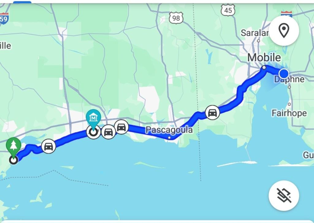 Continuing our route along the Gulf Coast, we drove through Gulfport, Biloxi and then into Alabama ending the day across the bay from Mobile Alabama.