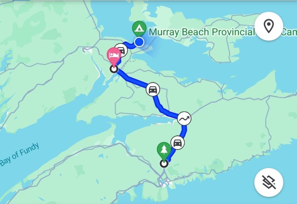 Last stop of the day is our campground at Murray Beach Provincial Park, driving through some of the Trantramar to get there. It’s extremely windy and no protection. The campsites are an open area above the beach. We’ve had to park creatively to get a windbreak effect from the vehicle. It’s a nice beach.