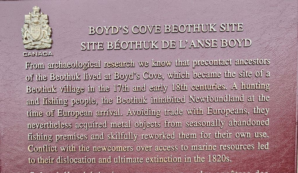 What is thought to be remains of a Beothuck village were found at Boyd’s Cove. Unlike other indigenous peoples, the Beothuk avoided the Europeans. The early fisherman only camped here in the summer months allowing the Beothuk to scavenge for metal and other items after they returned to Europe in the fall. Once the Europeans started settling and fishing permanently along the coasts, the Beothuk were driven inland, where there was little food supply.