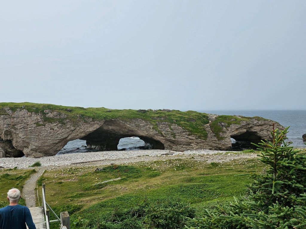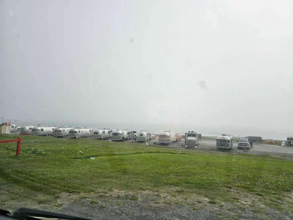 We had trouble finding a campsite in this area and when we got to this one we think we know why. Brian finally managed to find a site oceanside in Port aux Choix and it’s full of Airstreams travelling together. We don’t exactly fit in. It’s cool, foggy and very windy. An inside night for sure.