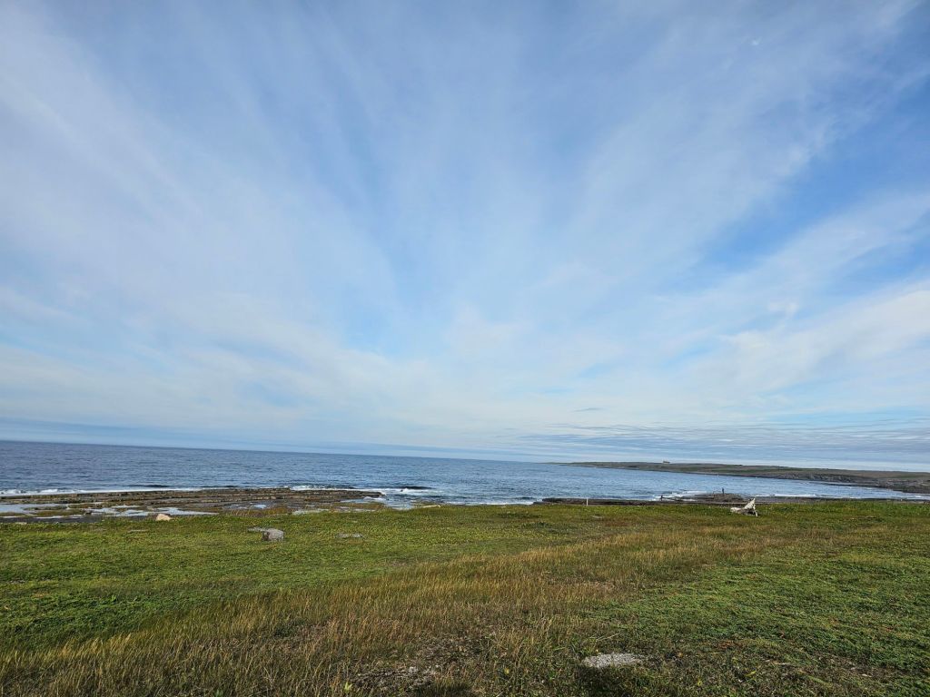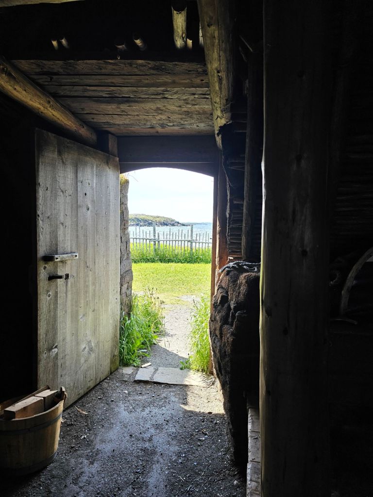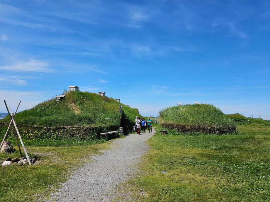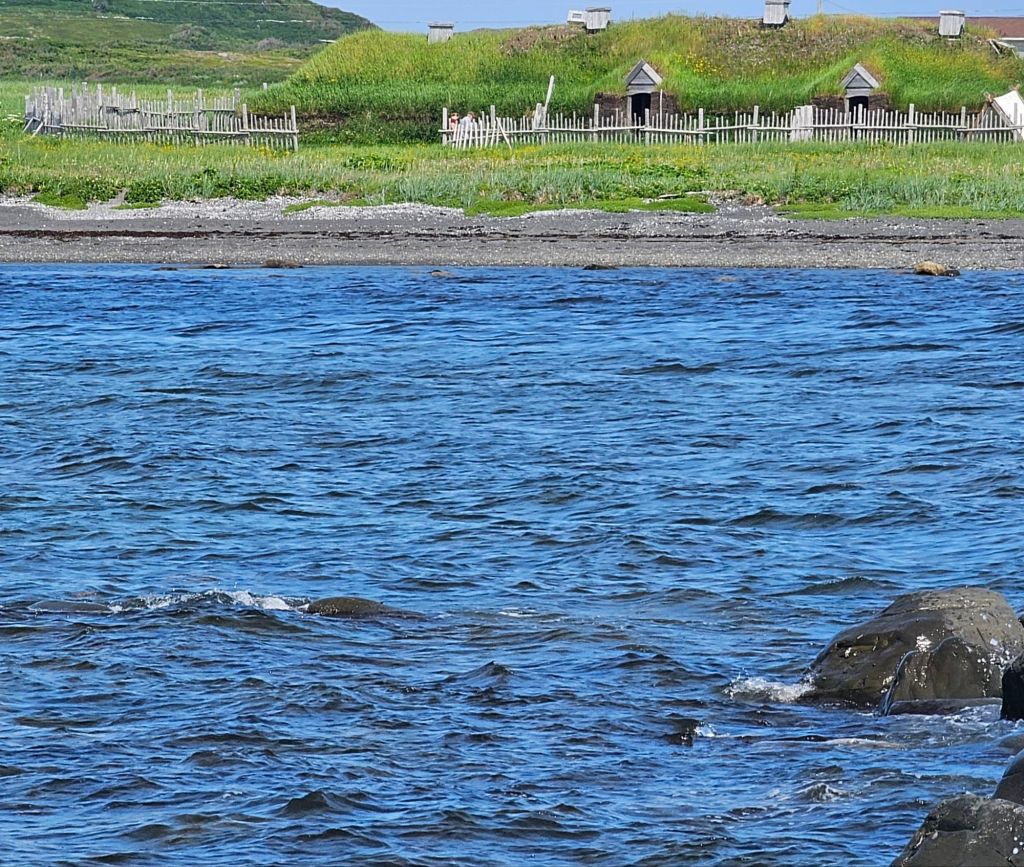 We arrived in L’Anse aux Meadows (which either means Cove of Jellyfish or Cove of Medea, you choose) about noon hour, went to the visitors center to get the lay of the land, then went to Skipper Hot’s lounge for a lunch of scallops and shrimp. We spent the afternoon in the historic site.