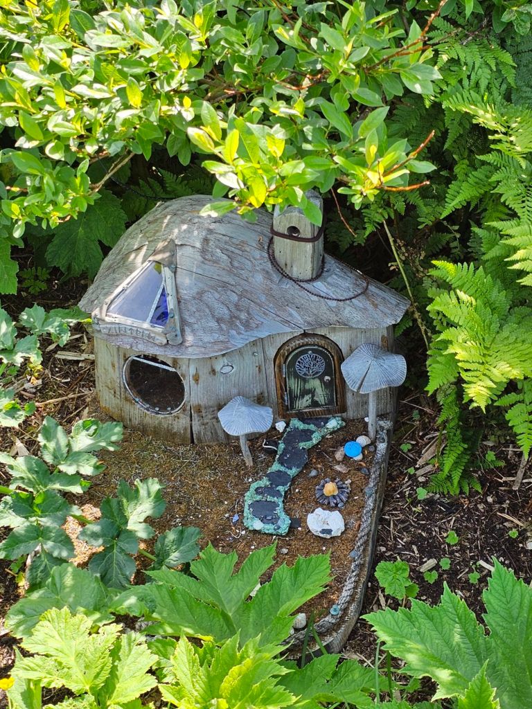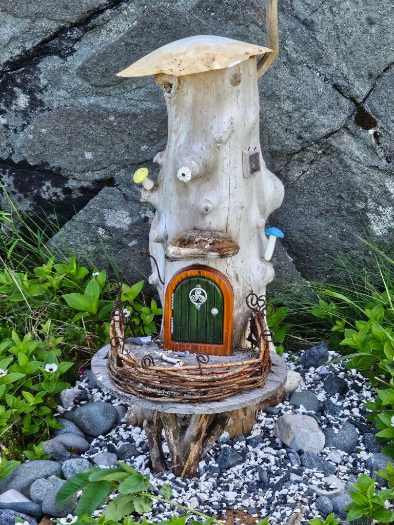 This is an exceptionally beautiful place. We walked back to the parking lot along the shore trail, about 2 1/2 km, finding scenic, relaxing places to sit and enjoy the beauty even finding fairy houses along the way.