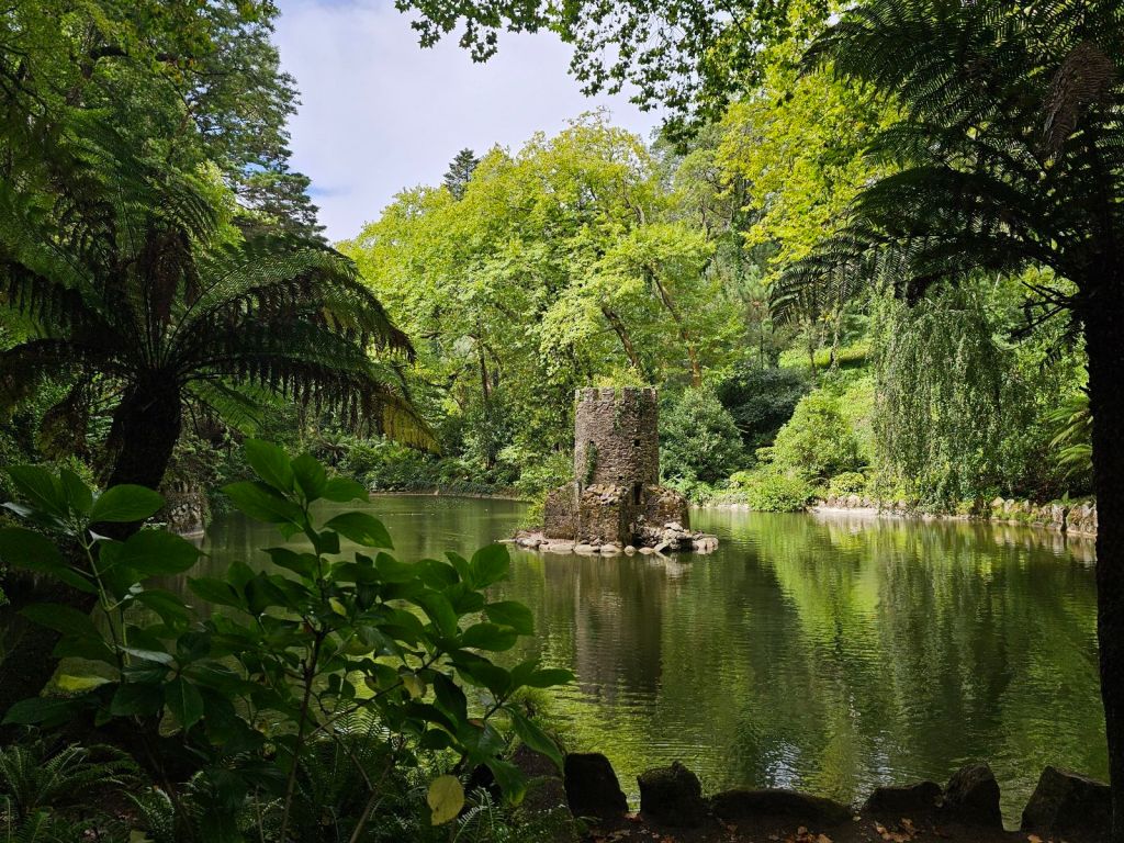 The Pena Palace is surrounded by a large park that features lush gardens, winding pathways, and hidden grottos.