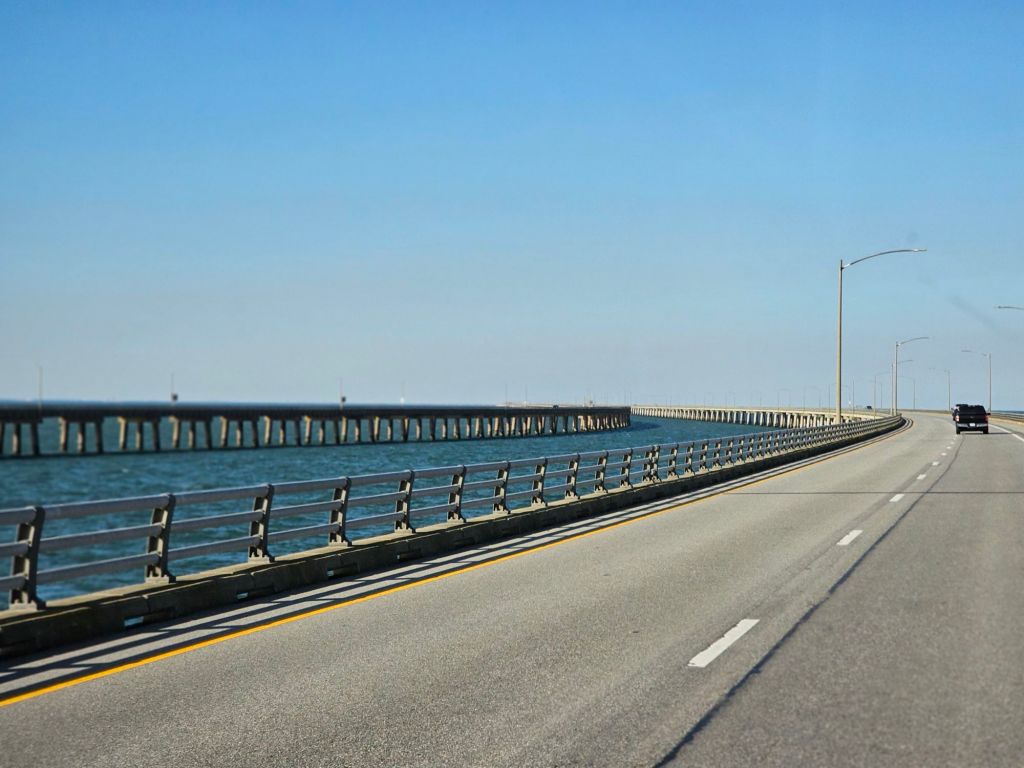 Beautiful clear blue sky. Perfect for the Chesapeake Bay bridge and tunnel. What a spectacular piece of engineering! See my previous blogs about this tunnel/bridge system.