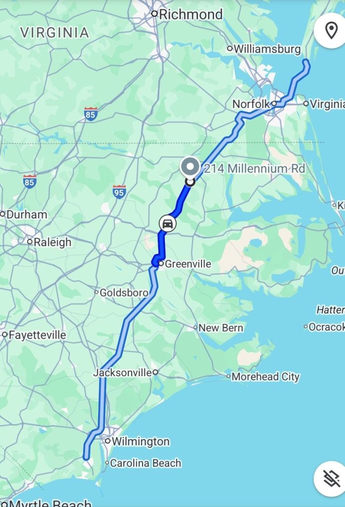 This is a travel day to get us down to where we want to spend the next 10 days. We didn’t stop anywhere other than a quick lunch of a shared chicken sandwich at a Royal Farms gas mart.