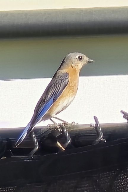 We started the day with a good long walk around the campsite in the pines and were rewarded with blue birds sitting on the fence posts.