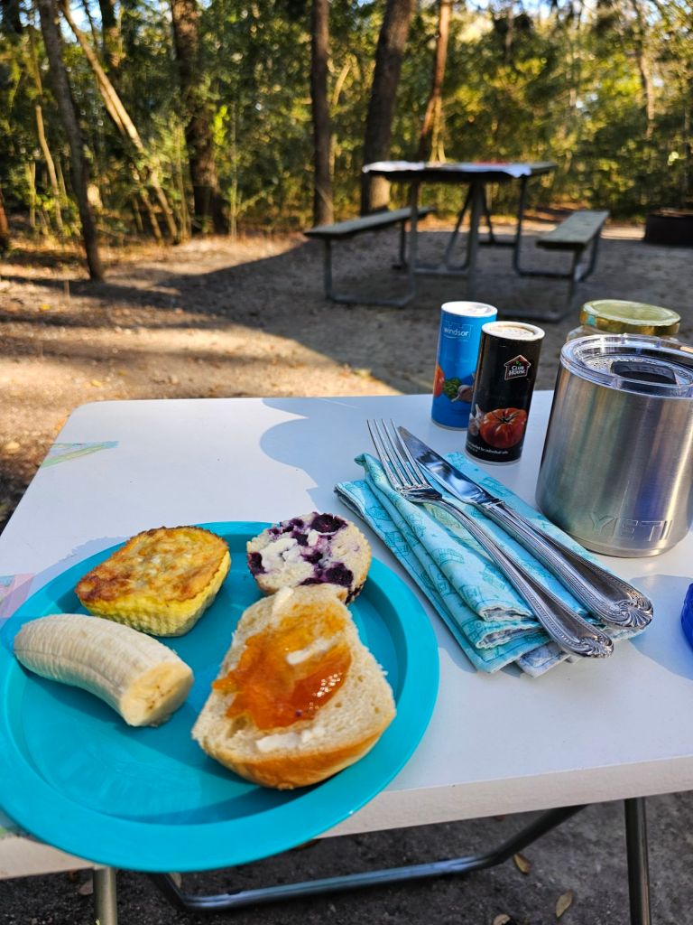 We are not moving camp or even driving anywhere today. As a result, we had a later than usual breakfast outside once it warmed up a little. Today we will explore this beautiful state park on foot. In addition to the beach, it has trails through the preserve areas and it’s own castle. See below.