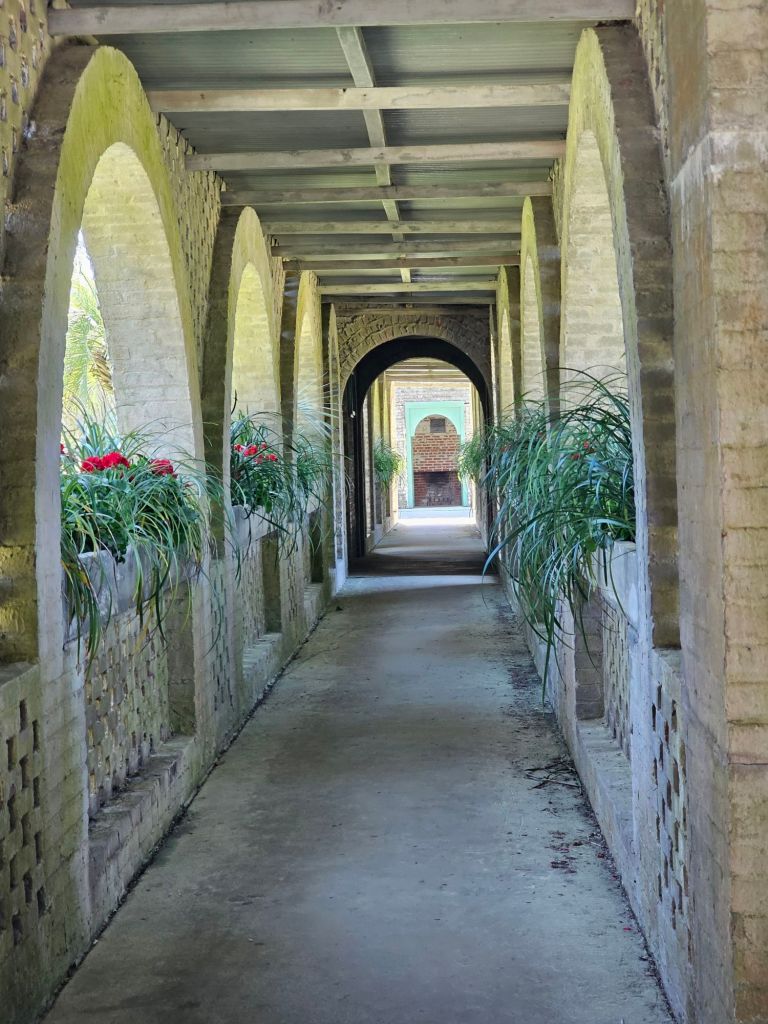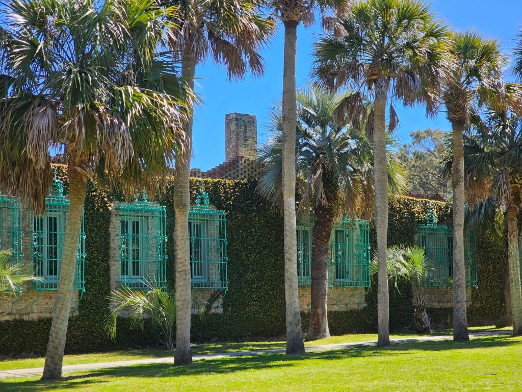 Atalaya, located in Huntington Beach State Park in Murrells Inlet, South Carolina, is a historic Moorish-style castle built in the 1930s. It was the winter home of Archer and Anna Hyatt Huntington, a philanthropist and a renowned sculptor, respectively. Archer Huntington designed Atalaya with coquina stone, giving it a unique, rustic appearance. The one-story structure includes 30 rooms, a courtyard with palm trees, and iron window grilles crafted by Anna herself. Originally, it housed Anna’s sculpting studio and animal pens for live models, including horses and bears.