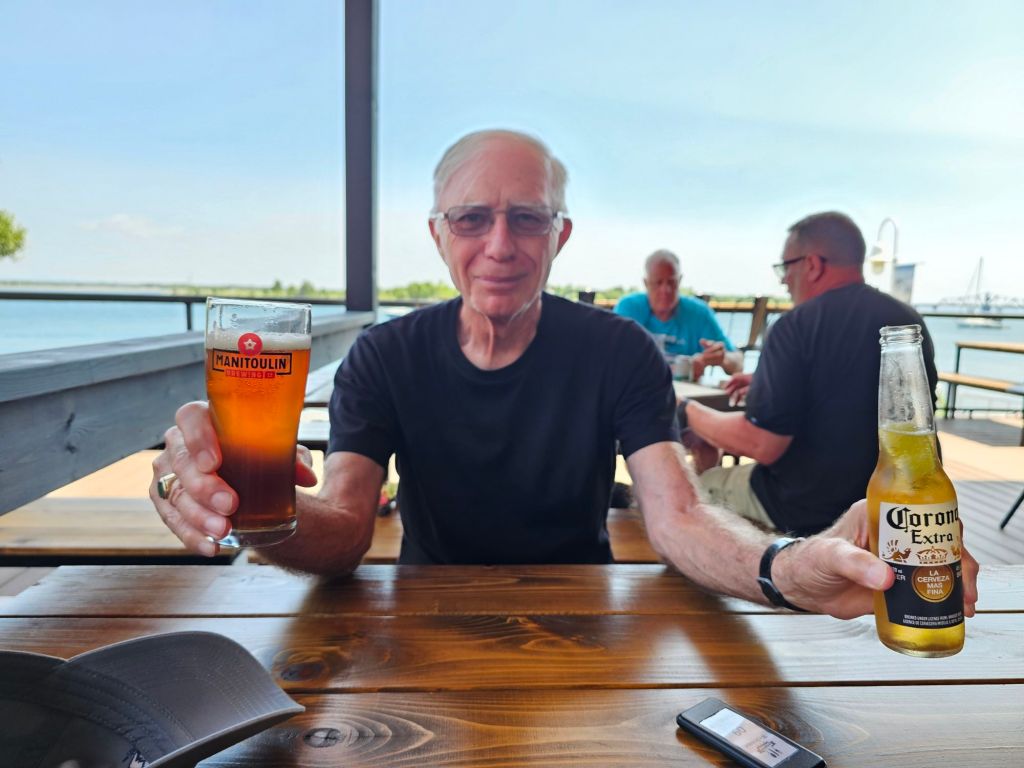 We spent an hour or so exploring the marina in Little Current, the only town of any size on the island. Lots of pleasure boats from both Canada and the U.S. docked here. The main water route into the marina from the Georgian Bay side is under (?) the swing bridge that takes road traffic off the island from the northern side. Road traffic is stopped for 15 minutes on each hour to accommodate boating traffic. To get to Lake Michigan via the Canadian water route is through this passage and west to the locks at Sault Ste. Marie. To get to U.S. waters and the Upper Peninsula of Michigan is south of Manitoulin Island towards Mackinac Island.