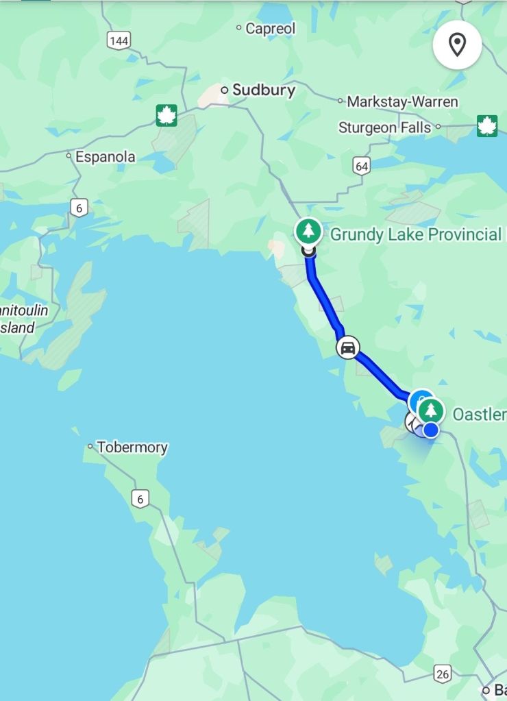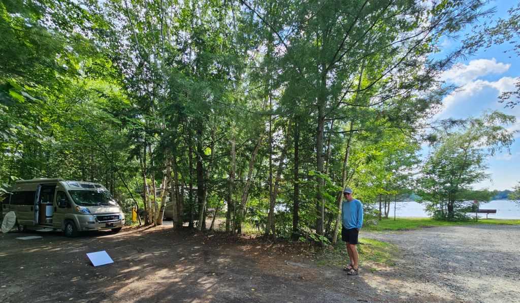 We are camped tonight in a beautiful provincial park just south of Parry Sound on Ostler Lake. Our campsite isn’t directly on the beach but it might as well be. Facing west, maybe we will a sunset for a change.